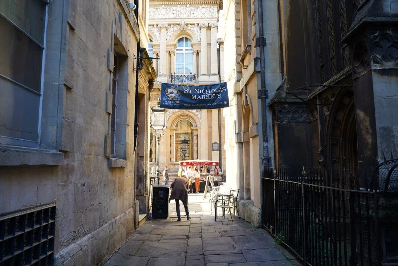 Alleyways near St Nicholas Market and the medieval All Saints’ Church on the right