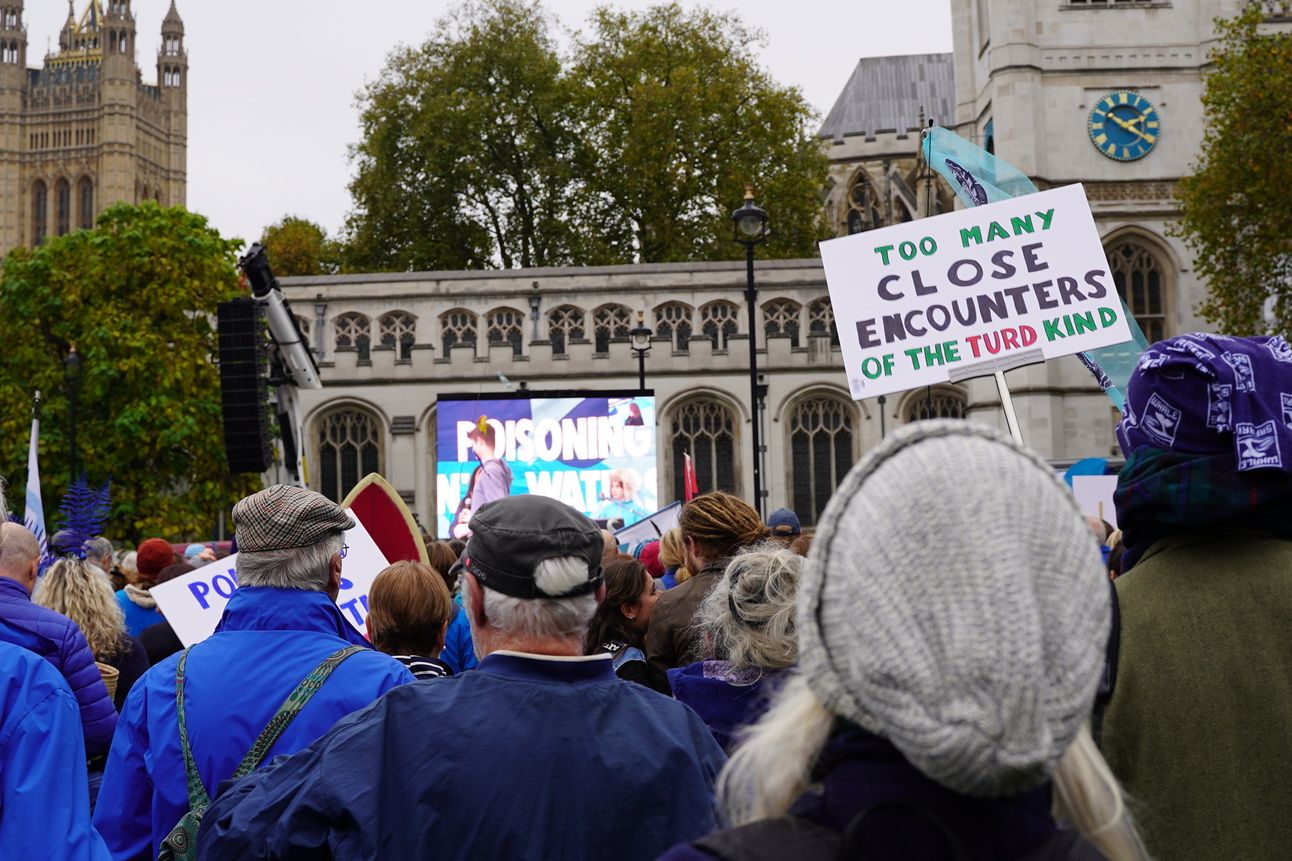 Colourful banners, cries of “No more poo!” and a sea of blue shirts flooded the banks of the Thames in Westminster at the weekend. Protesters watched public speakers on stage and short films from a big screen in the shadow of Big Ben and Parliament.