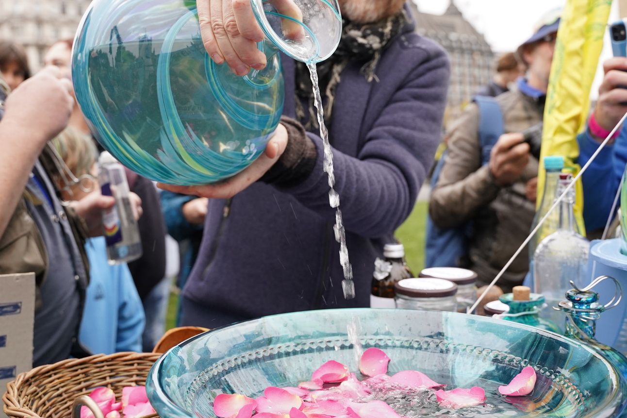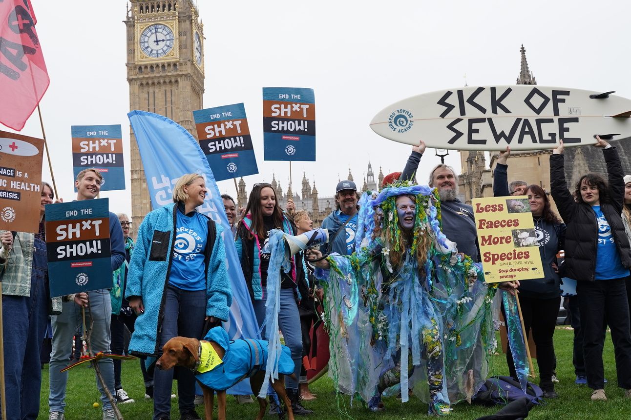 Campaigners brought samples from their local waterways to show the state of pollution around the country. In 2023, water companies in England discharged untreated sewage into rivers and coastal waters for a record 3.6 million hours, a significant increase from 1.8 million hours in 2022.