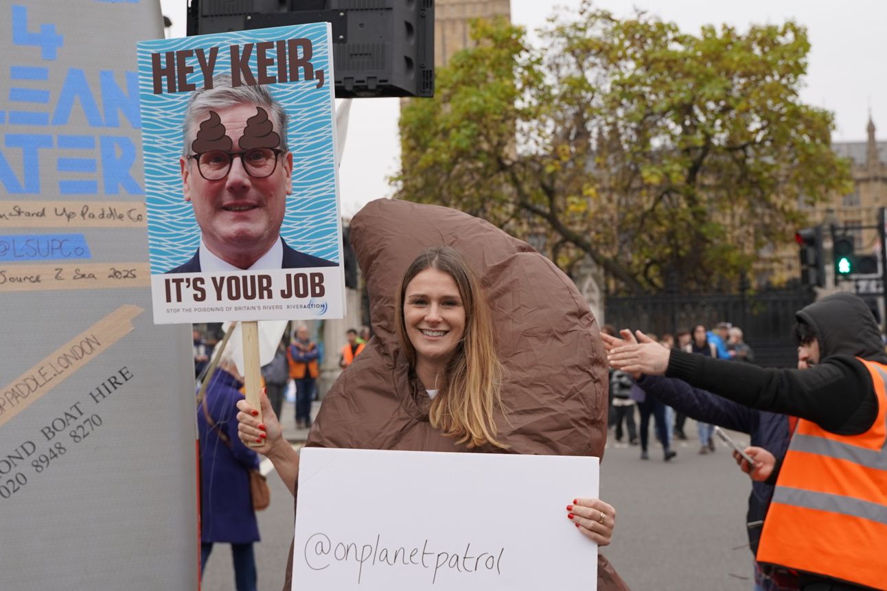 People from all walks of life and ages were seen in the capital protesting against sewage in the rivers Mersey, Medway, Ouse, Usk, Avon, Eden, Windrush, Wye, Wear, Colne, Clyde, Forth, Stour, Nene, Tay, Tyne, Trent, Tees, and Dee.