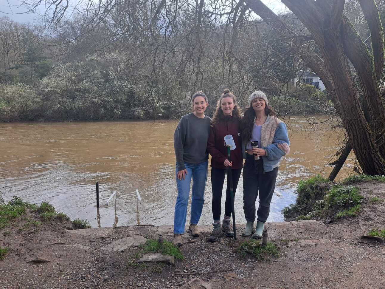 (L-R) Eva Perrin and Emma Nicol from Conham Bathing, with film maker Charlotte Sawyer at the Avon’s riverbank